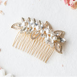 Our collection of gorgeous bridal hair combs comes in all shapes and sizes – from striking hero pieces that are large and crystal-encrusted, to small and delicate versions with a pretty cluster of tiny pearls or diamantes. And there are many options of where to wear them: off-centre, nestled in a chignon; central at the back of a loose, half-up style; placed to the side of a short hair do; or as an anchor to your veil.